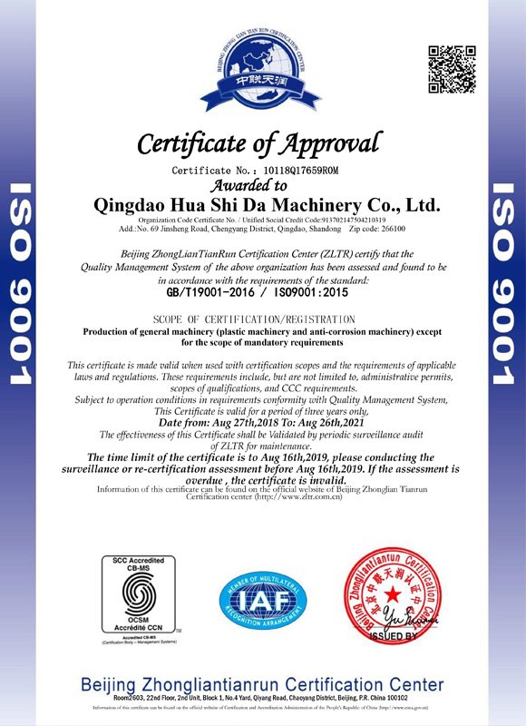 Как одна большая компания с новой и высокой технологией, Qingdao Huashida Machinery Co., Ltd. уже обладает многими государственными свидетельствами и мировыми сертификатыми. В последние года Компания Huashida постоянно разработает и исследует новую продукцию с сотрудничеством китайских известных университетах. Выбрать Компанию Huashida, значит верить силу бренд.