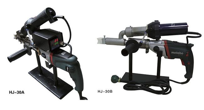 Обладает государственными патентами. HJ-30A для сварки PE, PP, PVC. HJ-30B для сварки PE, PP. Используем мотор Metabo и воздушный подогреватель Leister.