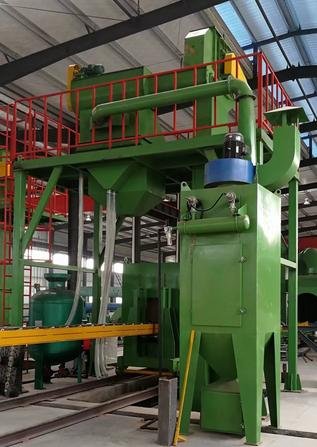 Дробемет для внутренней очистки труб предназначен для дробеметной очистки внутренней стенки труб среднего и большого размера с внутренним диаметром от 426 мм до 3000 мм. Уровень очистки может достигать Sa2.5.